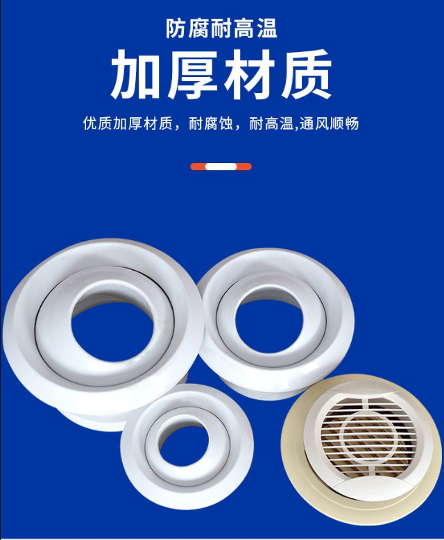 球形風口優點: 能有效阻止鼠蟲鳥等。取消突出之球體,中間有百葉片及防蟲網。百頁片向下,用來擋風遮雨。也叫圓型風口,平頭通風口叫法多種。不銹鋼排氣口,圓形排氣罩,自然排氣罩,不銹鋼風帽等等。因為和球形風口區別,故叫平頭風口的為多。板厚0.5mm插口直徑98mm左右,采用不銹鋼304的材質。適合直徑為60~300mm開孔,頸部附有三個小倒鉤片,適合于60~300mm左右直徑的軟硬管及墻體。裝置時不需螺絲固定,直接推入既可固定。主要是高檔小區、高層、外資工廠等作為直接向外排氣之用。美觀大方,經久耐用,安裝方便快捷。能給住宅起到畫龍點睛之效果,一種節能環保產品。